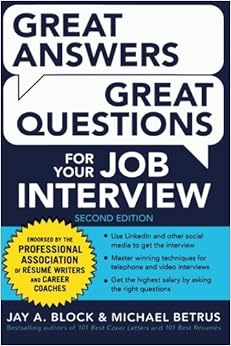 GREAT ANSWERS, GREAT QUESTIONS FOR YOUR JOB INTERVIEW is an extensive resource for use when preparing for a job interview. This book reminds me a little of another great book on job searching--Richard Bolles' What Color Is Your Parachute? 2015: A Practical Manual for Job-Hunters and Career-Changers. Bolles' book is a more general look at job searching, whereas this book focuses more specifically on interviewing. The authors have researched the job interview process in depth, and in this book tell you exactly what the interviewer is looking for, what you should do, and what you should NOT do.SOME GREAT SECTIONS:♦ How to use LinkedIn. Block talks extensively about getting your profile in shape. There are even examples of the best type of photograph to have in your profile. There are lots of things that I clearly had no idea about.♦ "Shift the Focus from Experience to Expertise." Companies want someone who can be an expert--not just someone who has xx years of experience. "Experience does not necessarily differentiate you; expertise does... You need to project that you are the Andre Agassi of your field, an expert rather than a journeyman who has put in her or his time." Never thought of it like that.♦ Example of the type of form that an interviewer will be filling out. Aha! Now I know what the stern man is doing! This gives you insight on the interviewer's agenda.♦ Big emphasis on "role playing" to prepare for an interview. Take a video of yourself, practice answering the tough questions. Use index cards to practice. Understand the tough interview questions, and the best response to each.